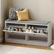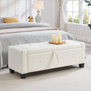 48'' Upholstered Tufted Faux Leather PU Ottoman White Bench with Storage