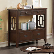 36'' Farmhouse Pine Wood Console Table Entry Sofa Table with 4 Drawers & 1 Storage Shelf