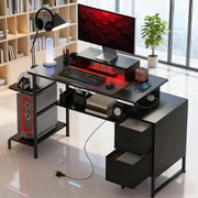 Grey and Black Office Writting Computer Desk with Open Shelves and Hutch