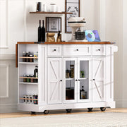 53'' Farmhouse White Kitchen Island Cart with Drop Leaf 5 Open Side Racks 3 Drawers