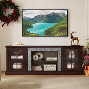 63'' Dark Rattan TV Stand Media Console Table with 2 Storage Cabinets