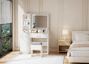 Fashion White Makeup Vanity Desk with Mirror and Adjustable Lighting