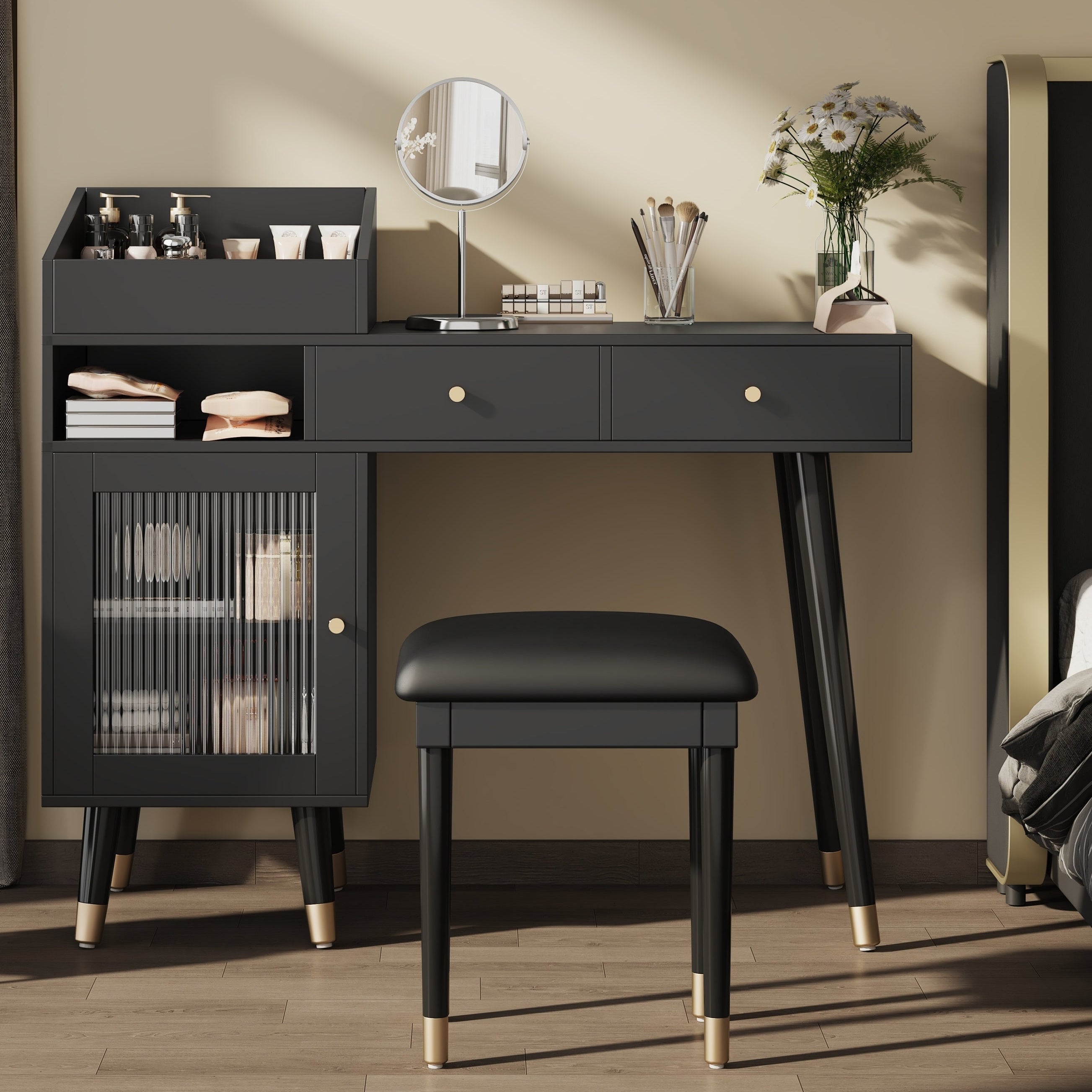 Modern Black Makeup Vanity Desk with Drawers Cabinet & Charging Port