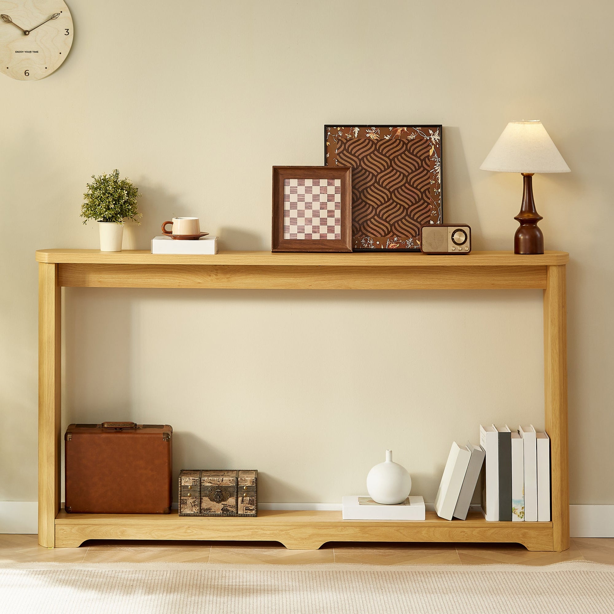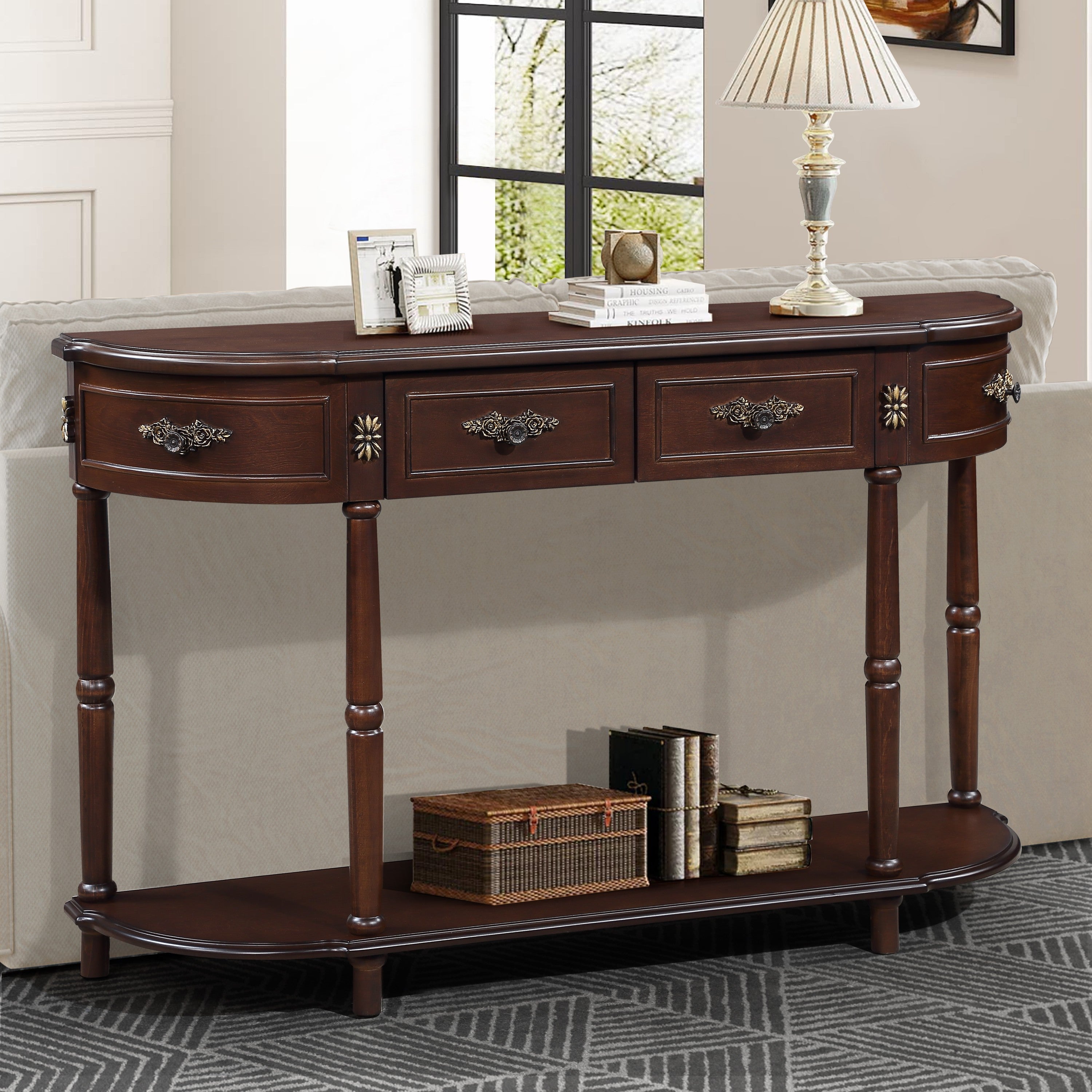 52'' Retro Curved Wood Console Sofa Table with Open Shelf and 2 Drawers