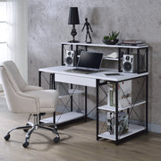 White and Black Office Desk with Open Shelves and Hutch