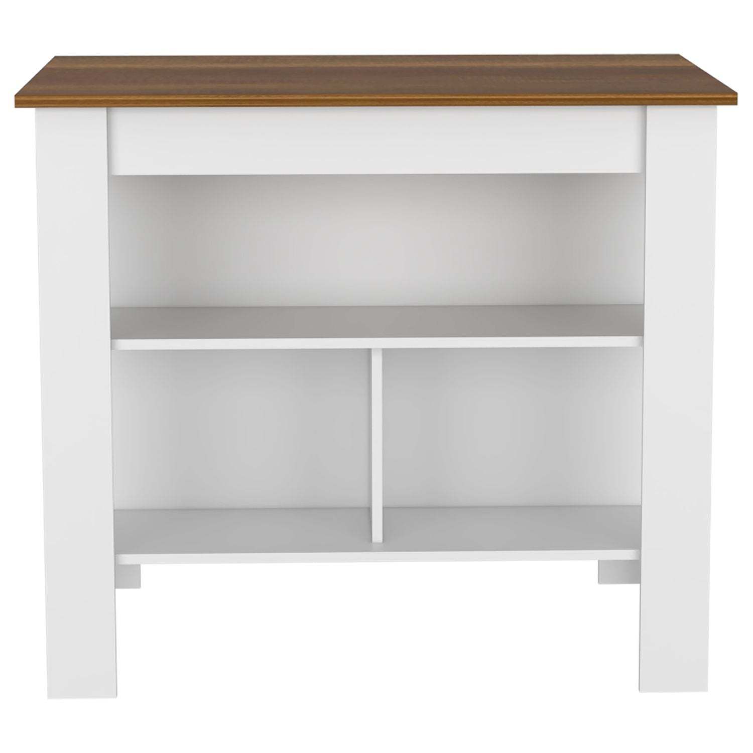 White / Walnut Kitchen Island Table With Three Open Storage Shelves