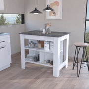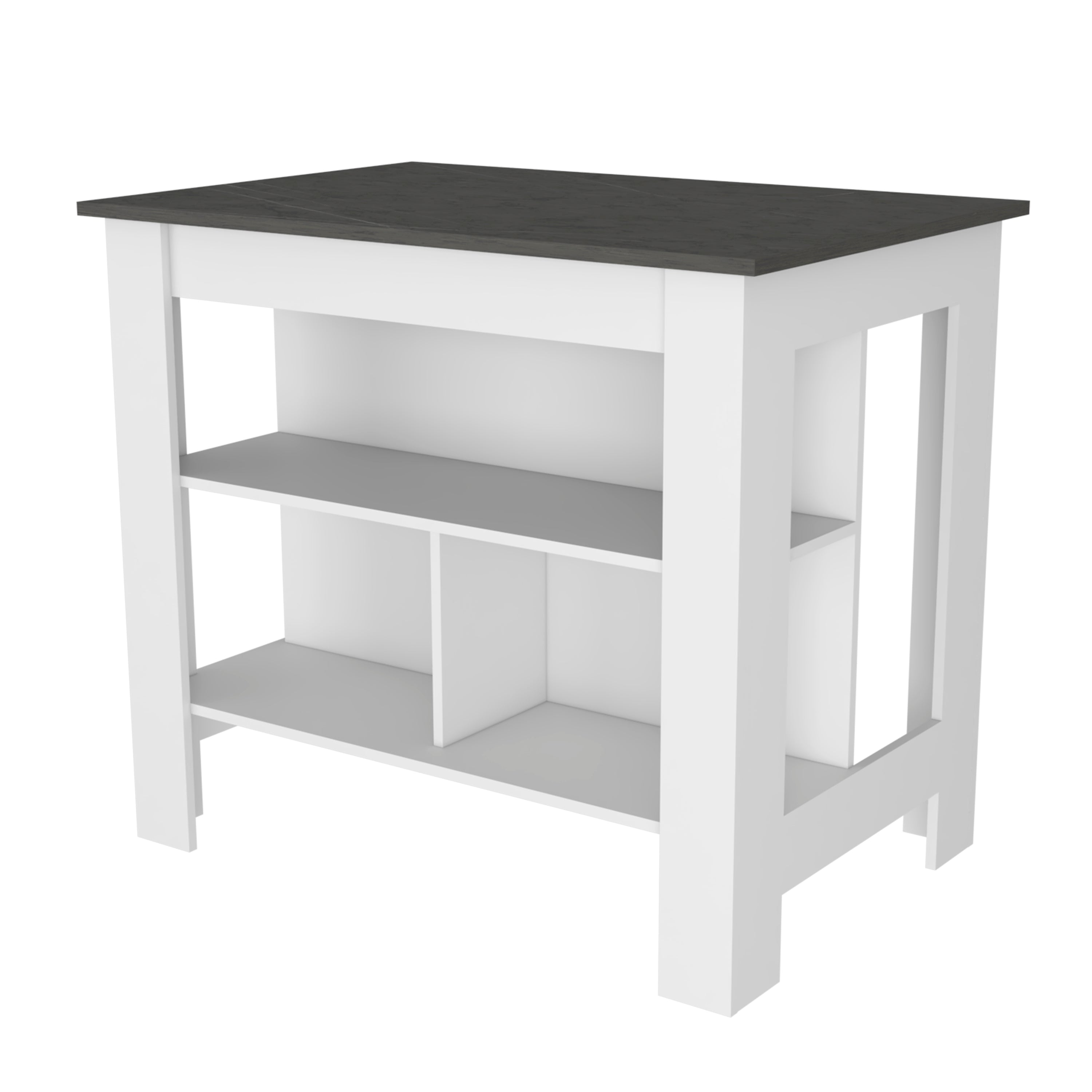 White and Light Oak Finish Kitchen Island With Three Side Shelves
