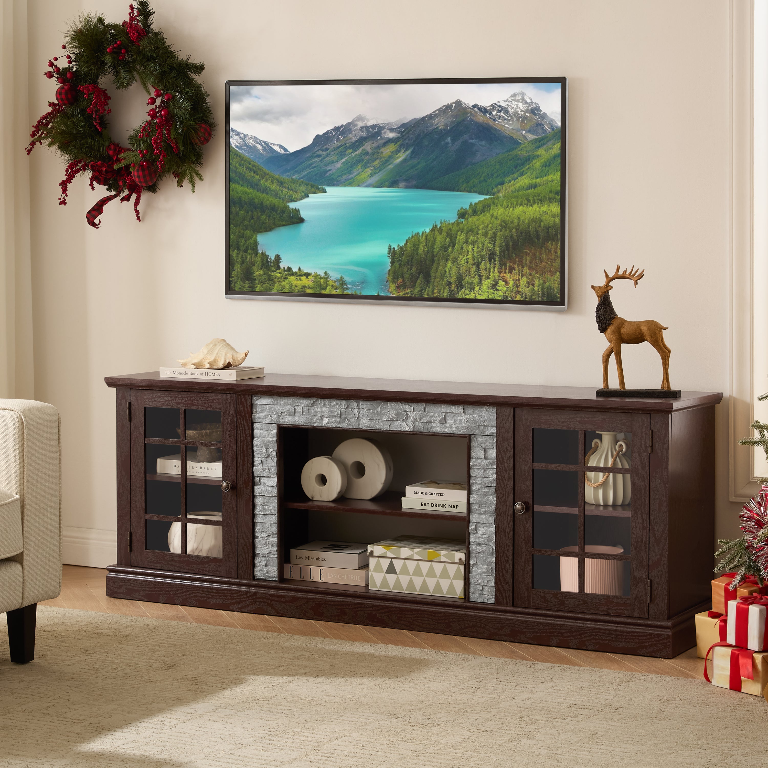Farmhouse Adjustable Storage TV Stand with Sliding Tambour Door for TVs up to 75''