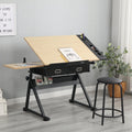 Adjustable Drawing Drafting Table Desk With Stool 2 Drawers