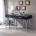 The desk includes two drawers, providing practical storage space for organizing office supplies, documents, and personal items. Featuring a sleek rectangular design supported by a metal base, it combines functionality with a contemporary, stylish look that enhances any workspace.