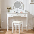 The dressing table set has ample storage solution with 5 drawers in different size for divided storage needs. It also includes a soft coshioned stool with PU cover and 1.8 inch foam pad, ensuing confortable and long use.