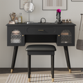 The wide tabletop, two large cabinets, and one smooth-gliding drawer with storage compartments offer ample space for your jewelry, cosmetics, and accessories.