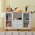 Mobile White Kitchen Island Storage Trolley Cart on Wheels with Dropleaf Top